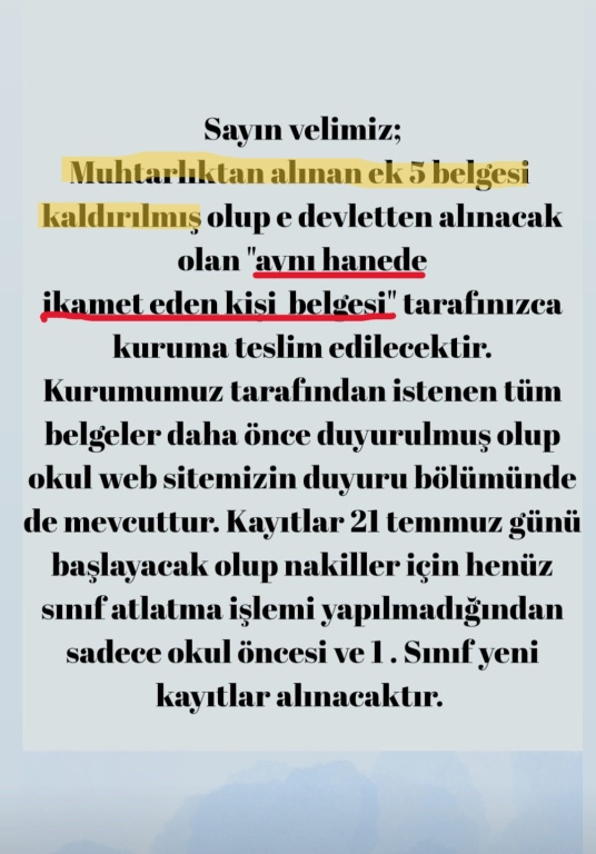 2025-2026 EĞİTİM-ÖĞRETİM YILI OKUL ÖNCESİ VE 1. SINIF KAYIT EVRAKLARI GÜNCELLENMİŞTİR. BİLGİNİZE